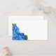 Cartões de lugar para vazio de hydrangea azul bonito. Flores e folhas no canto do papel branco comum para escrever os nomes dos hóspedes. Combine o tema floral azul do seu casamento ao sentar com os convidados.