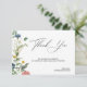 Flores de jardim protegidas com um belo quadro pássaro, elegante e caprichoso com fundo branco, mensagem de texto personalizável com um obrigado mínimo que você faz na tipografia.