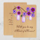 O dia perfeito de toda noiva inclui suas amigas. Quem você confia para dar um discurso e realizar tarefas como ajudá-la a escolher os vestidos das damas de honra para que o plano do seu casamento ocorra sem problemas? Seja sua irmã responsável, prima, sobrinha ou melhor amiga, este convite "Você será minha Dama de Honra" é uma maneira divertida de perguntar. Personalize o cartão alterando o texto nos campos fornecidos. Você pode alterar o estilo, tamanho e cor da fonte, tipo e estilo de papel.