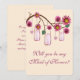 O dia perfeito de toda noiva inclui suas amigas. Quem você confia para dar um discurso e realizar tarefas como ajudá-la a escolher os vestidos das damas de honra para que o plano do seu casamento ocorra sem problemas? Seja sua irmã responsável, prima, sobrinha ou melhor amiga, este convite "Você Será Minha Dama de Honra" é uma maneira divertida de perguntar. Personalize o cartão alterando o texto nos campos fornecidos. Você pode alterar o estilo, tamanho e cor da fonte, tipo e estilo de papel, bem como a cor do fundo.