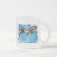 Baleias da orca que saltam na caneca de café do vidro de água.
