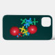 Um conjunto de 2 bolas de borracha vermelhas e ossos de pescoço multicoloridos.