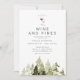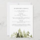 Este convite de soleira e modelo itinerário apresentam pinheiros de aquarela rusticase e uma fonte russa manuscrita. Edite facilmente todos os textos e fontes para atender às necessidades do seu evento. Este convite é perfeito para o seu fim de semana de guerra na floresta ou montanha.