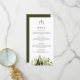 Este cardápio de casamento apresenta pinheiros de aquarela rustica e uma fonte manuscrita boêmica. Edite facilmente todos os textos e fontes para corresponder ao estilo do evento.