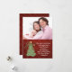 Adicione sua foto à frente deste cartão de saudação personalizado, de dois lados, e expresse que Jesus é a razão para a época de Natal! Árvore de Natal bonita com uma estrela amarela no topo, e uma inspiradora mensagem de Natal Religioso no fundo vermelho-escuro do marrom.