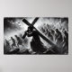 Poster preto e branco de Jesus carregando a cruz. Esta poderosa imagem gerativa é um testemunho de ser salva apenas por Sua graça.