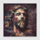 Cette carte est ornée de l'image de Jésus Cristo. Elle est représentée par des formes géométriques complexos et des couleurs vives, avec des party du corps décomposées et représentées sous différents angles. Cela crée une impressionsion de moumotion et de profondeur, tout en ajoutant une touche artistique único.