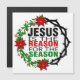 Jesus é a razão da temporada, esta design apresenta uma coroa de espinhos e uma coroa de natal com texto dizendo "Jesus é a razão da estação".
