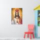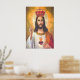 Jesus King Poster vintage tem Jesus com seus braços no ar e uma coroa vermelha sobre ele e ele tem uma roupa vermelha laranja e branca com um coração e uma cruz no peito. esta é uma foto da safra do início de 1900