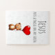 Aprecie uma criança com o nosso "Jesus coloca um sorriso na minha fé" quebra-cabeça de quebra-cabeça! Com um urso adorável e um balão em forma de coração, este quebra-cabeça combina o design lúdico com uma mensagem significativa que cada criança pode abraçar. Excelente como presente, parte de um partido temático, ou para um evento de ministério infantil como a VBS, este quebra-cabeça é uma maneira segura de inspirar fé e diversão! Celebre o amor de Jesus, dando a este belo quebra-cabeça de quebra-cabeça a seu filho hoje!