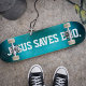 Jesus Salva Irmão. skate de risco azul abstrato