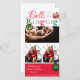 Este cartão com fotos é uma maneira maravilhosa de desejar a seus amigos e família uma temporada de férias muito feliz. Este design tem um fundo branco brilhante que cria um quadro para três fotos ou fotos. No topo diz: "Os sinos estarão tocando." Para ativar o seu texto, há sinos em vermelho e verde em lados opostos do texto. Abaixo está um lugar para uma foto maior da paisagem. Abaixo dessa foto está um lugar para duas fotos quadradas moldadas. Na parte inferior há um erro vermelho para colocar seu texto em branco. Do lado direito há um sino verde e um lugar para você colocar no ano.