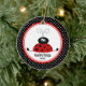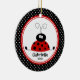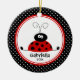 O grupo vermelho & preto bonito datado dos enfeites de natal da menina do joaninha em uma polca preta & branca pontilhou o fundo. Um presente do Natal da maravilha sure a ser estimado por muitos próximos anos.