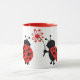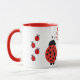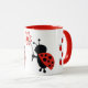 Caneca combinado lunática com um par de joaninhas e de uma flor em vermelho, em preto, e o branco.
