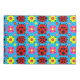 Padrão contínuo alegre com joaninhas vermelhas vibrantes e flores coloridas em um fundo azul brilhante, perfeito para designs divertidos e inspirados na natureza.