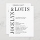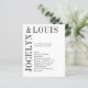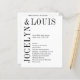 Programa moderno de casamento, com um design preto e branco minimalista com seus nomes em uma fonte grande ao lado esquerdo e superior. Esta design é simples o suficiente para um casamento formal, mas faz uma declaração ousada.