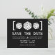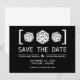Este Jogador de Dice D20 Salve o Anúncio de Data em preto e branco é perfeito para o casal nerd que se apaixonou por um interesse compartilhado em jogar jogos e gostaria de anunciar seu casamento exibindo esta parte de suas personalidades. Esta design ofuscada apresenta uma trio simples e minimalista de vinte lados. Fácil de personalizar, basta adicionar os detalhes do casamento nos campos de texto fornecidos. Clique em "Personalizar" para encontrar mais opções de personalização.