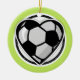 Celebre a temporada de festas com este adorável futebol no enfeite do design do coração. Apresenta um fundo externo brilhante e verde com círculo acentuado de brilho preto e bola de futebol em forma de coração. Perfeito para uma árvore de Natal com tema desportivo.