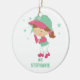 Este ornamento cerâmico redondo tem um jogador de softball guardarar uma luva com algumas estrelas no fundo. Você pode personalizar o nome e o número na parte inferior. Gráficos pelo design de Zenware