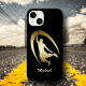 Esta capa de telefone projetada para o jogador de basquetebol ou fã apresenta um jogador de basquete da silhueta dunking a bola, com um gradiente design de galho dourado atrás dele. Um campo de texto permite personalizá-lo. A imagem e o texto são colocados em um plano de fundo preto. *O Clip art usado neste design é protegido por direitos autorais pela Encore Software, Inc., que permite o uso a seus licenciadores. Todos os direitos reservados.