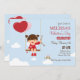 O convite de festas de uns namorados juvenis que caracteriza uma menina de sorriso em um balanço que guardara balões e que joga o Cupido. (FP)