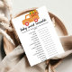 O tema de outono fofo apresenta uma abóbora, riscada de chá de fraldas As palavras neste cartão estão todas relacionadas a bebês e foram embaralhadas. Os hóspedes vão competir para ver quem pode desembaraçá-los todos primeiro! CHAVE DE RESPOSTA: 1. assento do carro; 2. leite 3. caneta para tocar 4. pacificador O quinto ponto é uma cadeira de balanço de fralda. 7. berçário 8. baby monitor; 9. swaddle 10. Fórmula. 11. Pato de borracha 12. Rolha. 13. monitor. 14. 15. Termômetro.