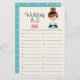 Uma garota bonita de yoga, chá de panela a z, cartões de jogo. Peça aos seus hóspedes que adicionem palavras relacionadas ao casamento de a a z neste jogo bonito. Uma flor de lótus rosa, um fundo creme e uma bolinhas branca na frente e uma noiva morena para estar em um tanque branco com um coração cor-de-rosa, pernas pretas sentadas na cruz em um tapete azul-aqua. Ela veste uma lindíssima faixa de polca branca e preta com uma flor rosa correspondente. Trabalho de arte © Chrissy H. Studios, LLC. Todos os direitos reservados.