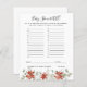 Este cartão de jogo de chá de fraldas apresenta belas florais de inverno de cor aquosa, em tons de vermelho e branco, que são balanceados com verde-luxuoso, fazer-o uma paleta quente e arejada. Altere a cor de fundo ou adicione gráficos para corresponder ao tema do chá. Precisa coordenar gráficos, entre em contato comigo para obter um pedido personalizado. Claro que não é necessário que você jogue jogos no chá de fraldas, mas considere isso: Você terá um grupo de todas as idades, e a maioria dos convidados provavelmente nunca se conheceram antes da festa. Misturar alguns desses jogos clássicos de chá de fraldas é uma maneira perfeita de quebrar o gelo. Essas placas projetadas profissionalmente são rapidamente personalizáveis. Adicione seu texto personalizado a este design usando as caixas "Editar este modelo design" no lado direito do item, ou clique no botão azul "Personalizar" para organizar o texto, alterar as fontes e cores e também adicionar informações ou imagens adicionais a este design. Clique em "Personalizar mais" para abrir as opções de edição de cheio. Se você precisar de algum item de coordenação (cartões de agradecimento, etc.), entre em contato comigo para obter um pedido personalizado. ****Para pedidos personalizados com os quais necessita da minha ajuda, não coloque esta mercadoria no carrinho. Em vez disso, envie-me um e-mail com sua solicitação em lauralise@iyhtvdesigns.com Um link para sua mercadoria será enviado a você por e-mail assim que o item estiver disponível. Você pode usar esse link para fazer seu pedido. Por favor, aguarde até 48 horas.