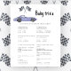 Cartão de convite para chá de fraldas do tema Race car com ilustrações de aquarela de um carro vintage roxo (violeta) e de preto - branco. "Corrida para um chá de fraldas." CHAVE DE RESPOSTA: 1.d 2.d. 3.a 4.c 5.c. 6.a. 7.b 8.c.