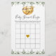 O cartão de jogo de bingo de chá de fraldas com tema Largura apresenta uma ilustração de preguiça com cor d'água e verde-d'água, eucalipto garland, e uma elegante fonte de estilo manuscrito.