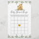 O cartão de jogo de bingo de chá de fraldas com tema Largura apresenta uma ilustração de preguiça com cor d'água e verde-d'água, eucalipto garland, e uma elegante fonte de estilo manuscrito.