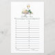 Adicione entusiasmo ao seu chá de panela com este cartão de jogo "Wedding A to Z"! Apresentando um belo vidro de champanhe e design floral de videira, esta atividade criativa desafia os hóspedes a escrever palavras relacionadas a casamentos para cada letra do alfabeto. Um disfarce perfeito ou jogo de festas para entreter convidados enquanto celebra a noiva-a-ser. Totalmente personalizável para se adequar ao tema do seu chá de panela.