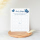 Parte da coleção do Blue Jean Baby, este jogo do Baby Bingo é a maneira perfeita de manter seus convidados entretidos durante a abertura de presentes! Você pode decidir as regras do bingo: diagonais, quatro cantos, etc. Apenas faça seus hóspedes preencherem as praças com presentes que esperam, e mande-os marcar como convidado de honra abrir e anunciar! Todo texto é personalizável para corresponder aos detalhes da sua ocasião perfeitamente ↣ basta clicar no botão ‘Personalizar’. Misture com outros jogos dentro da coleção para um dia cheio de diversão!