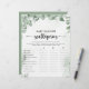 Este jogo clássico de histórias do chá de fraldas de eucalipto é uma atividade divertida e rústica para um chá de fraldas minimalista. A design apresenta lindas folhas verdes de eucalipto com aquarela.