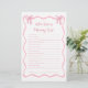 Celebre com o melhor jogo de chá de fraldas! Este jogo personalizado "Quem Conhece Melhor Mamãe" é perfeito para o tema do chá de fraldas cor-de-rosa. É uma maneira divertida e interativa para os convidados aproveitarem momentos memoráveis juntos. Ideal para temas de chá de fraldas coquetel, este jogo de chá de fraldas de arco adiciona charme a qualquer celebração. Procurando ideias de jogos de chá de fraldas ou ideias de chá de fraldas rosa? Este favorito da festa de arco é incontornável para um dia na moda, inesquecível!