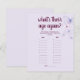 Este jogo do What's Age Age's Age é uma maneira divertida de incorporar fotos de bebês no chá! Todo texto é personalizável para corresponder aos detalhes da sua ocasião perfeitamente ↣ basta clicar no botão ‘Personalizar’. Misture com outros jogos dentro da coleção para um dia cheio de diversão! Antes do evento, você precisará coletar 10 fotos de cada um dos pais a serem. Coloque-os para fora e permita que seus convidados vejam por todo o chá. Sempre que você escolher, leia em voz alta as respostas corretas e o convidado com mais vitórias!