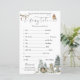Acho que o cartão de chá de fraldas de conto de fadas é uma maneira única e divertida de entreter convidados no próximo chá de fraldas de florestas de inverno. A carta apresenta uma linda cena de floresta de inverno com animais bonitos. Os convidados adorarão tentar adivinhar o título de cada conto de fadas corretamente.