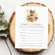 Cartão de caça bonito de chá de fraldas com a ilustração aquosa de um filhote de lobo rodeado por folhas de outono em tons de laranja, vermelho e amarelo no topo da carta. Personalize o cartão com instruções personalizadas, critérios de adivinhação e o nome e data de chá de fraldas da futura mãe. A design coordena-se com a nossa coleção de chás de fraldas de Animais da Floresta Única.