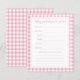 Previsões e conselhos de chá de fraldas de gingham rosa elegante para mãe e pai.