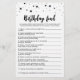 Adquira este jogo monocromático e desfrute de um cartão de Aniversário de alta qualidade para o seu evento! Design preto e branco. RESPOSTAS: 1. A Eletricidade Saía 2. Velas 3. Trabalho 4. Presentes 5. Numa Dieta 6. Balões 7 Piadas 8. Chocolate 9. Velas 10. Pinos A Cauda 11. Sorvete 12.Selfie