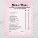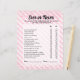 Comece com o Jogo de Aniversário do Coquetel Nunca ou Nunca Rosa! Este jogo divertido e festivo apresenta uma série de perguntas personalizáveis que manterão seus convidados entretidos e rindo durante a celebração. Perfeito para aniversários, chás de panela, ou qualquer reunião festiva, este jogo adiciona um toque lúdico ao seu evento. Quer você esteja combinando coquetéis com doces ou respondendo perguntas peculiares, é uma maneira excelente de engajar seus convidados e criar momentos memoráveis. Personalize as perguntas para se adequarem ao tema do seu partido e assista ao desenrolar da diversão!