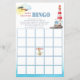 Folha de caça do bingo chá de fraldas náutico. A design apresenta um farol com gaivota e estrelas-do-mar sobre as rochas; uma âncora, o oceano e o sol vestindo um chapéu que olha pelo telescópio. O BINGO é escrito em texto decorativo e o design tem uma história de cor geral de azul, vermelho e branco. Se você quiser combinar produtos, por favor navegue na minha Ahoy, é uma coleção Boy ou me mande uma mensagem para adicionar as modelos de design que você precisa.