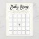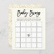 Elegante gráfico de "Bingo de Bebê" com letra cursiva, folha de jogo para chá de bebê. Fundo com padrão de abelha e favo de mel dourado em aquarela.