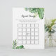 Este jogo de bingo de noiva tropical de destino é perfeito para um chá de casamento moderno. A design apresenta palma verde de cor d'água pintada à mão e folhas de bananeira bem organizadas em belos buquês.