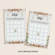 Adicione charme ao chá de panela com este cartão de jogo floral do Bridal Bingo, enquadrado em sotaques de ouro, pérolas e linchos brancos elegantes. Os hóspedes enchem os quadrados com presentes que pensam que a noiva receberá, e depois marcam-nos quando os presentes forem abertos. O primeiro a completar uma fileira ganha, fazer isso de uma atividade viva e na moda que reúne todos.
