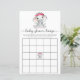 Jogo de bingo divertido para chuvinha de bebê menina, apresentando "bingo de chuvinha de bebê" em uma fonte estilosa cinza claro com floreios e uma aquarela de um elefante bebê menina com flores rosa.