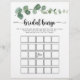 Este jogo de bingo de eucalipto com prazer verde é perfeito para um simples chá de casamento. A design apresenta galhos e folhas botânicas elegantes e desenhadas a aquarela e desenhadas à mão.