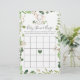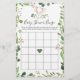 O cartão de jogo de bingo de chá de fraldas com tema elefante apresenta uma ilustração elefante com cor d'água e verde com cor d'água, eucalipto garland e uma elegante letra de estilo manuscrito.