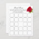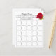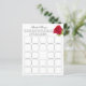 Adicione um toque de diversão e elegância ao seu chá de panela com este belo jogo do Bingo do Bridal, tema da rosa vermelha! Os hóspedes gostarão de preencher os vazios com presentes que pensam que a futura noiva receberá e marcar as praças quando os presentes forem abertos. O primeiro a pegar cinco em seguida e gritar "Bingo!" ganha. O design minimalista e impressionante gráfico rosa vermelha deste cartão de jogo fazem dele uma adição perfeita a qualquer celebração noiva sofisticada. Torne seu chá de panela inesquecível com este jogo encantador e interativo!
