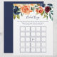 Este jogo de bingo floral multicolor e elegante é perfeito para um chá de casamento moderno. A design apresenta buquês perfeitamente desenhados à mão de rosa, pincelado, amarelo, burgundy, vermelho, indigo e folhagem verde, inspirando beleza natural.